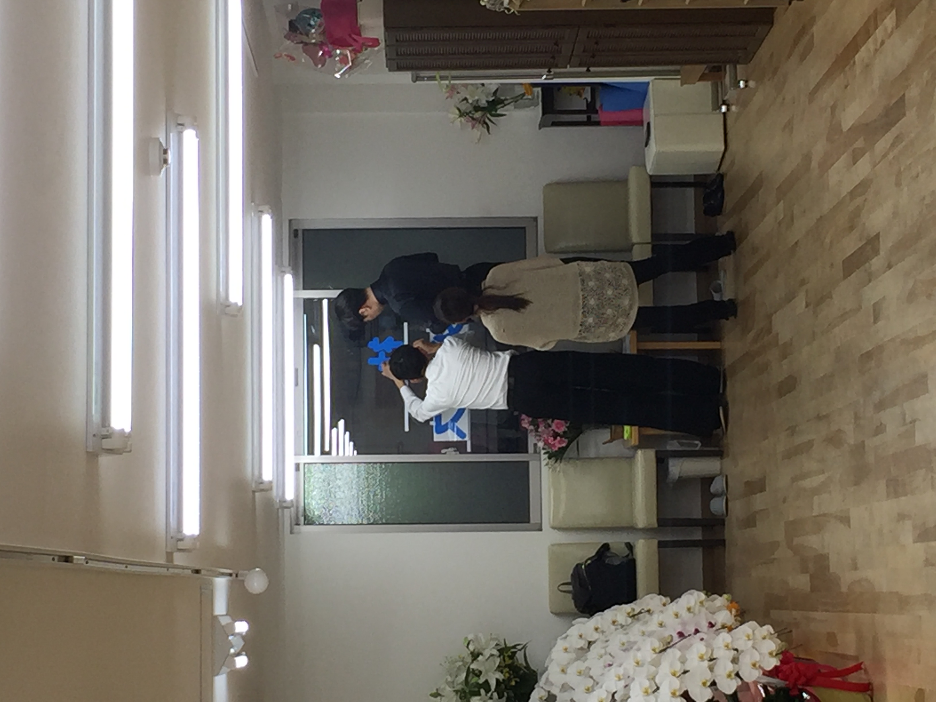 そして、今日は福井(福井朗晋)先生が業者さんでセレクトしてくれた、窓に貼るカッティングシートが完成し、文字を窓に貼る作業をしました!